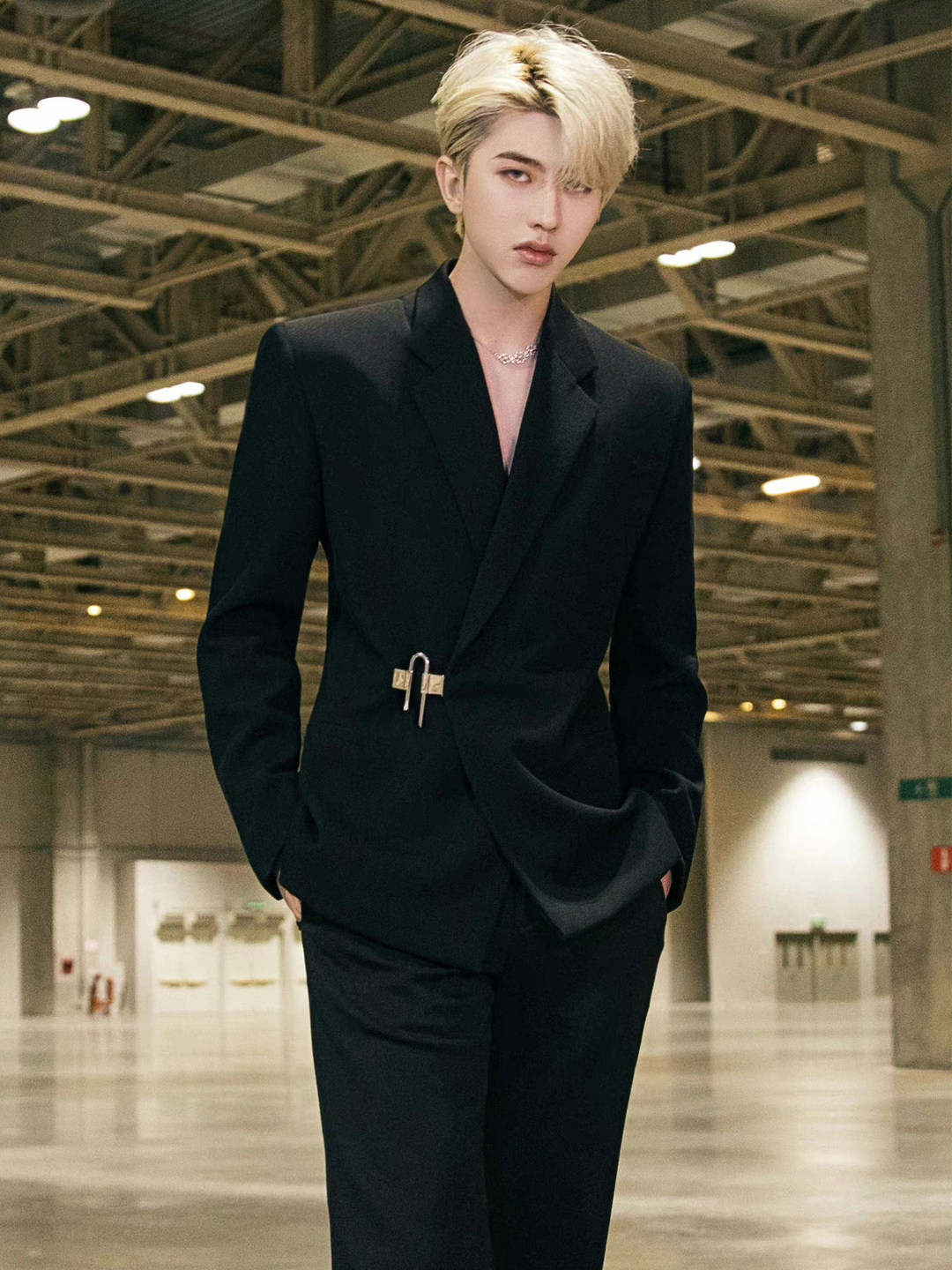 蔡徐坤欧阳娜娜同款金属插锁扣美发造型发型师演出走秀西装9098