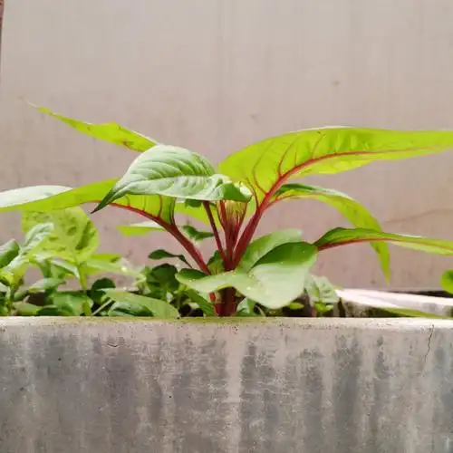 鸡冠花的幼苗最特别,茎是红色的,叶子是尖尖的三角形△;菊长得最矮小.