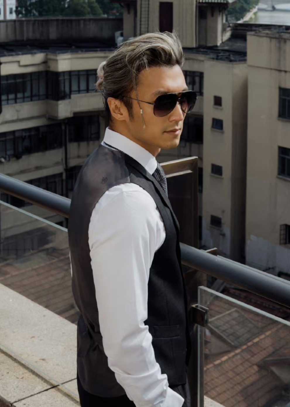 谢霆锋在天台凹造型耍帅,头发染了一半潮范十足,虽然穿衣打扮还是他