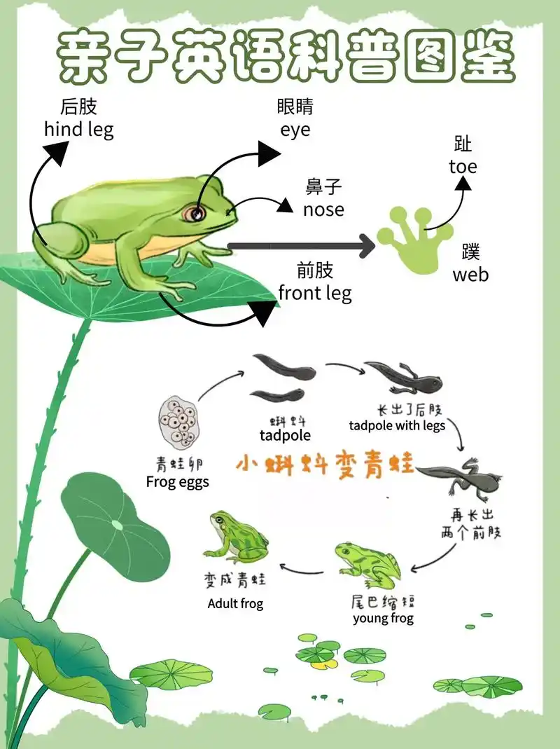 亲子科普英语day1【小蝌蚪变青蛙】青蛙的生命周期也非常有趣 - 抖音