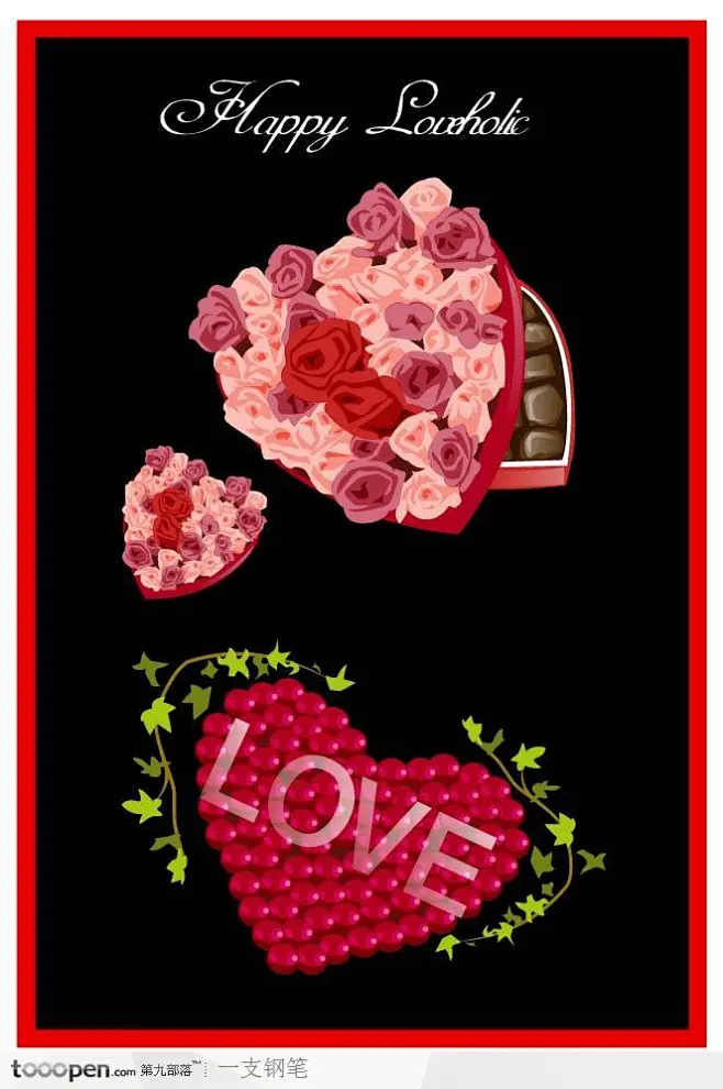 浪漫玫瑰花心形矢量素材