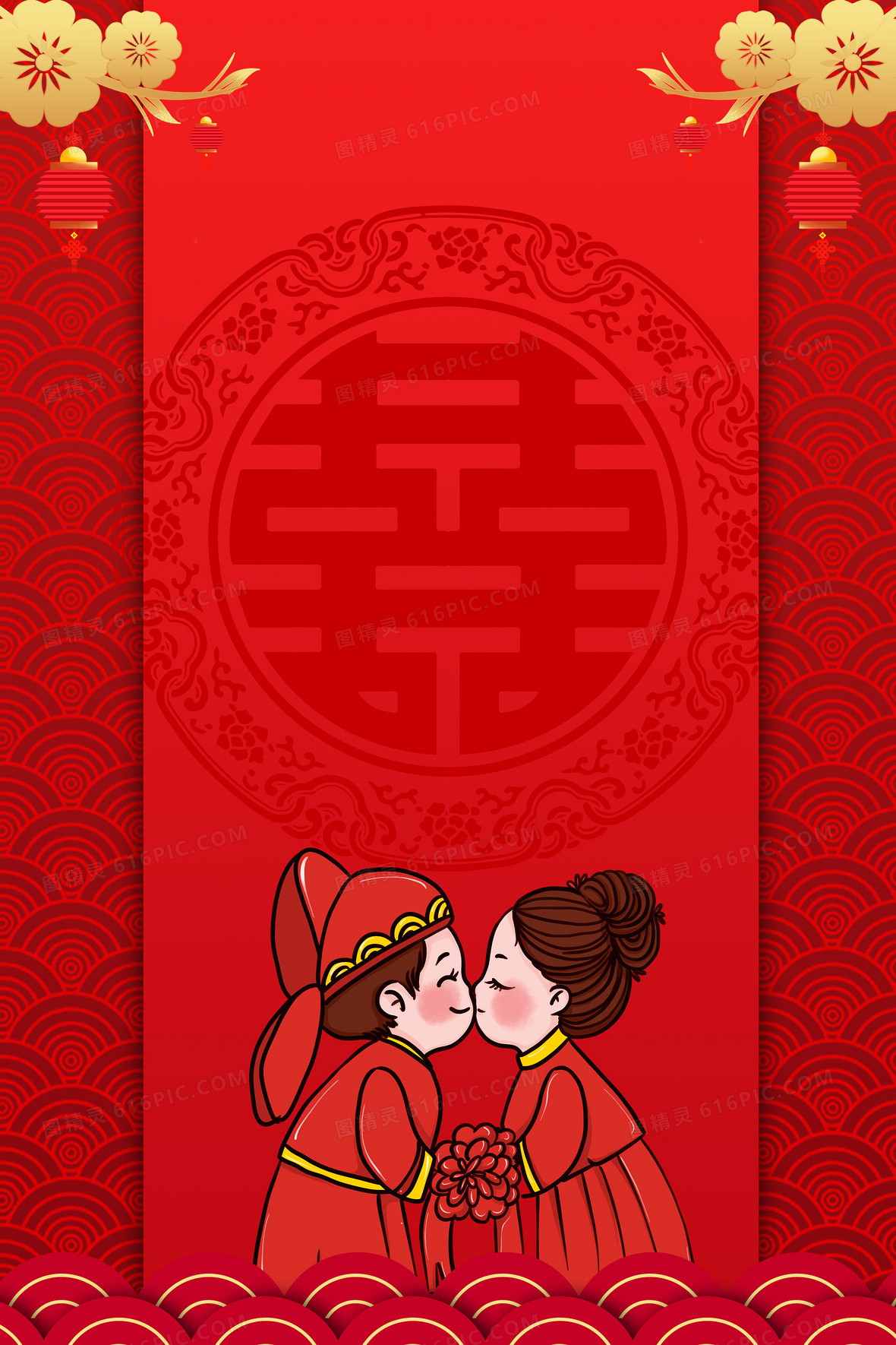 红色中国风传统结婚婚礼请帖背景