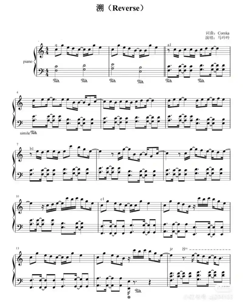 溯 reverse钢琴数字简谱-虫虫乐谱