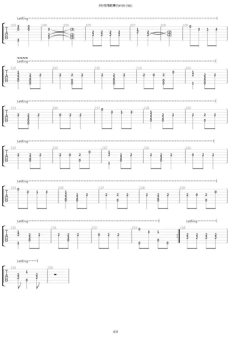 98k之歌吉他谱 e调六线谱_简单版_fitz & the tantrums-吉他室