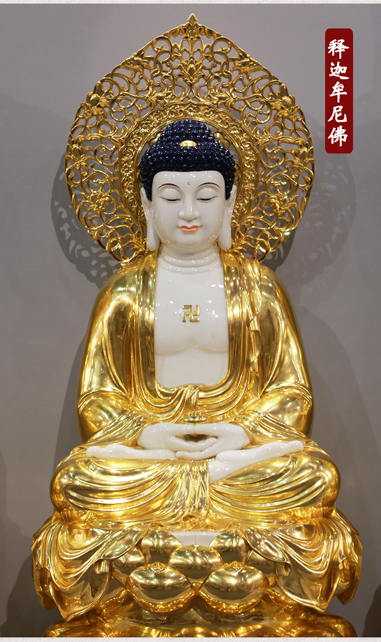 三漫陀 贴金佛像摆件 释迦牟尼佛像 娑婆三圣释迦摩尼佛像玉如来 高