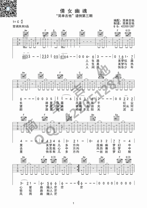 倩女幽魂吉他谱 c调简单高清版本_简单吉他编配_张国荣-看谱啦