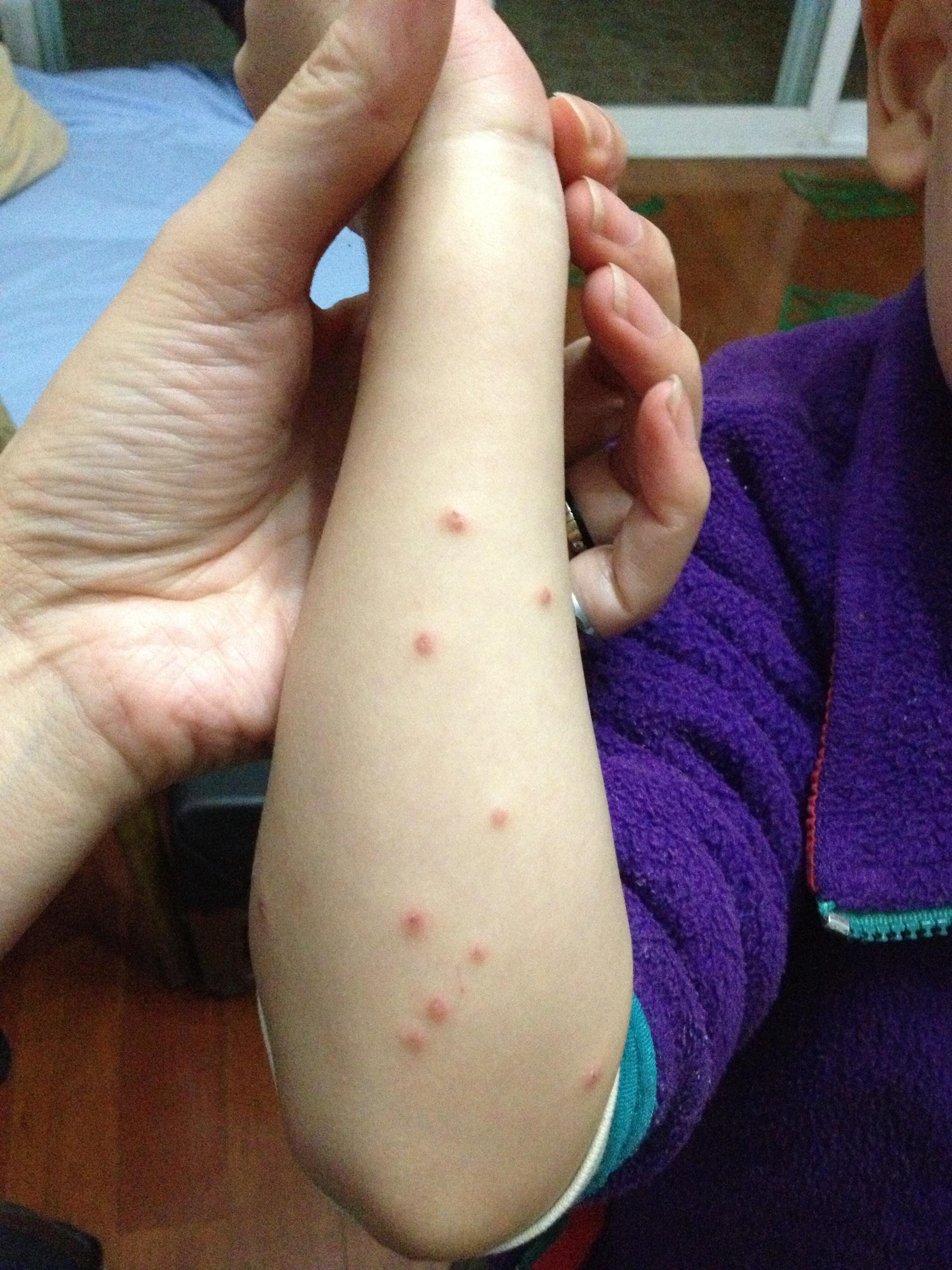 十五个月宝宝身上多处红,有白色疹子,时有时无,晚上更痒,可不可以洗澡