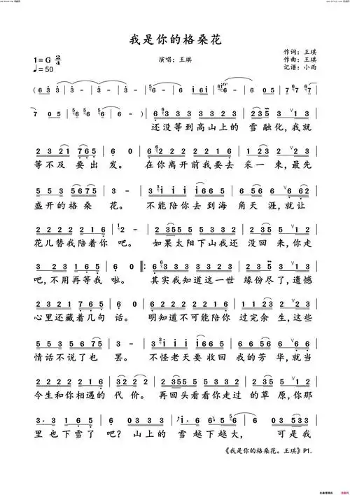 我是你的格桑花王琪 动态谱简谱-王琪演唱-王琪/王琪词曲1