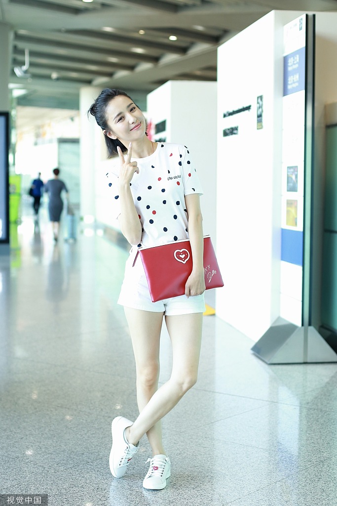 佟丽娅扎半丸子头现身 秀纤细好身材
