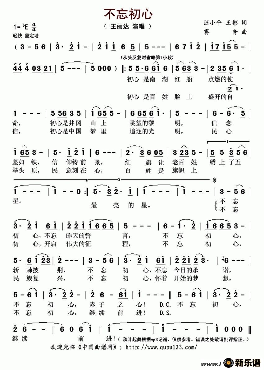不忘初心(廖建中词 李汉民曲)_简谱_搜谱网