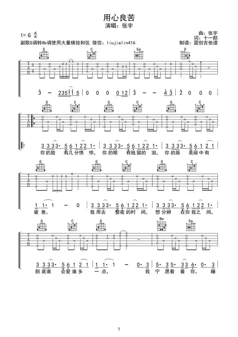 张宇用心良苦简谱,张宇用心良苦歌谱,张宇用心良苦歌词,曲谱,琴谱