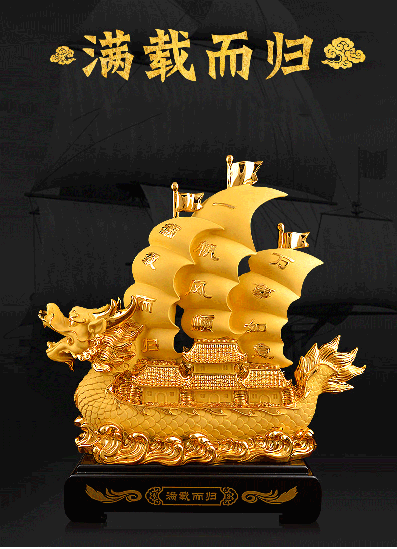 2019顺风顺水摆件招财财金龙船大号客厅办公室摆件