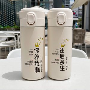 ins风简约创意文字保温杯便携努力赚钱水杯男女学生杯子忙着可爱