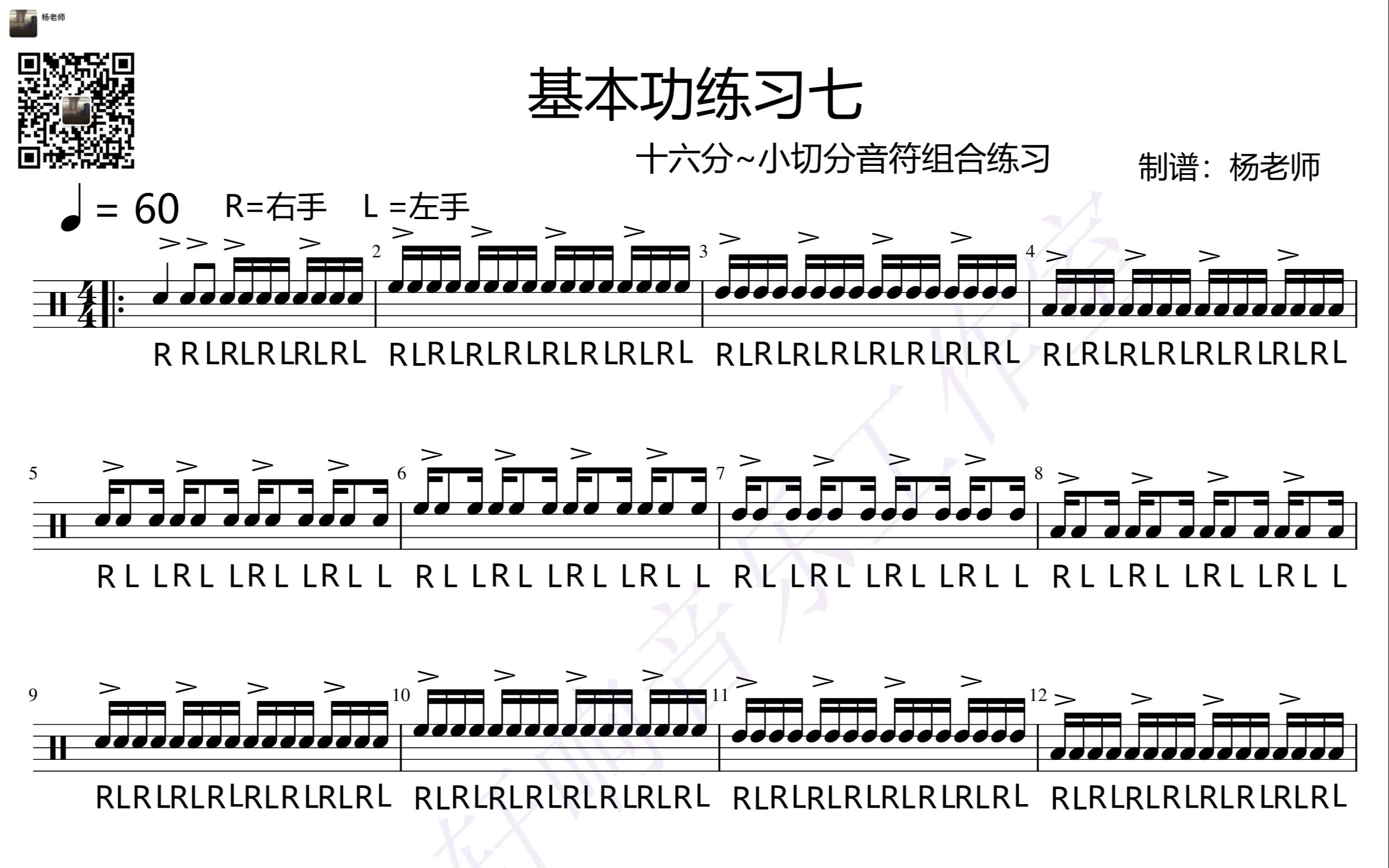 动态鼓谱架子鼓每日一条基本功练习七十六分小切分音符组合练习