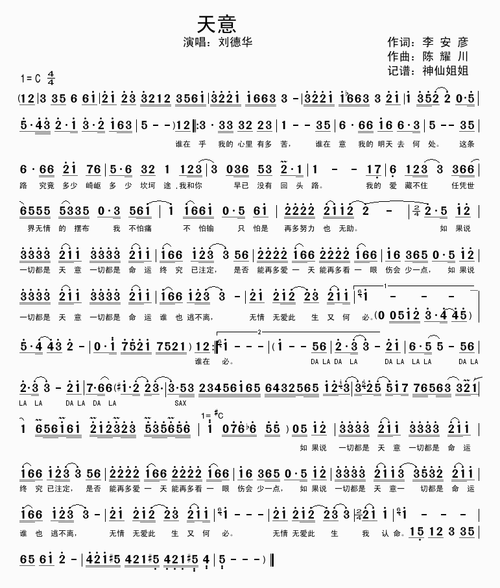 天意简谱-刘德华演唱1
