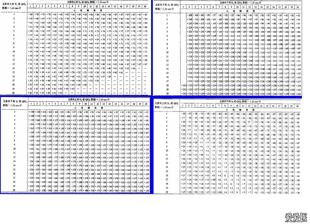 心电轴对照表