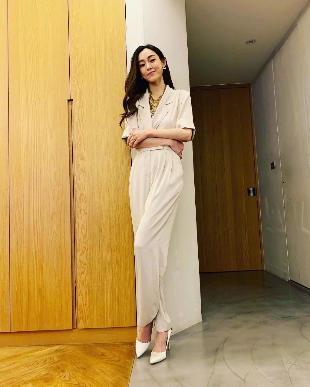范玮琪晒生活照穿连体裤配高跟鞋身材好到让人羡慕