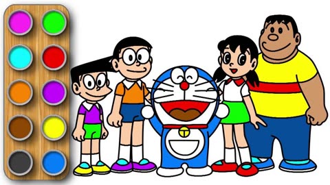 儿童彩色绘画,大雄和哆啦a梦的全家福