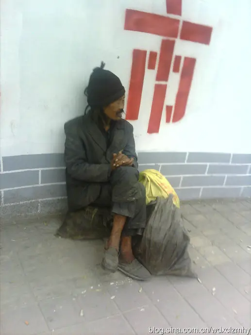 在大街上的乞丐照片