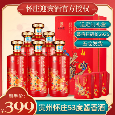 怀庄迎宾酒百年酱香53度酱香型白酒整箱500ml*6瓶礼盒装纯粮食酒