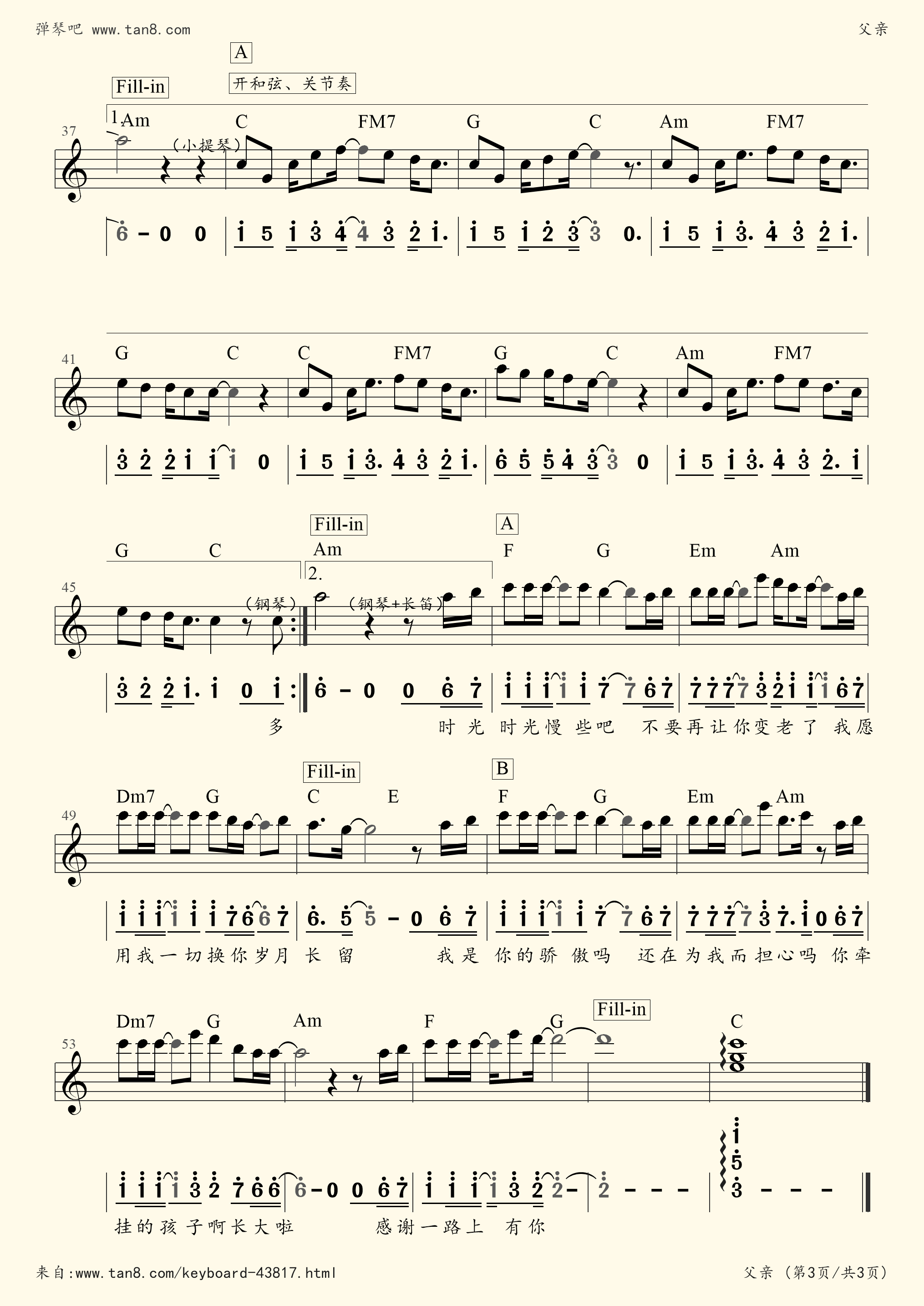 电子琴谱父亲c调电子琴谱筷子兄弟
