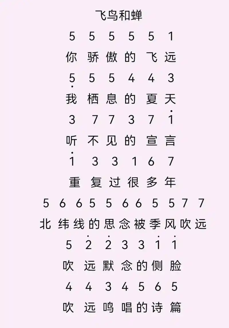 《飞鸟和蝉》简谱 《飞鸟和蝉》简谱