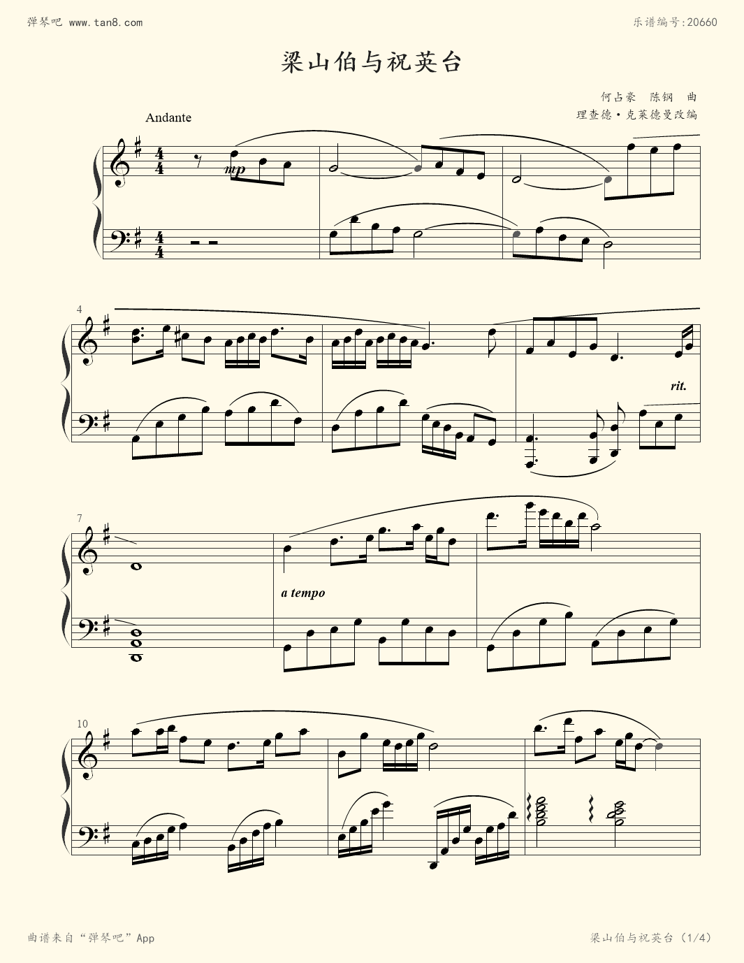 梁祝,钢琴谱》初学版,陈钢|弹琴吧|钢琴谱|吉他谱|钢琴曲|乐谱|五线谱