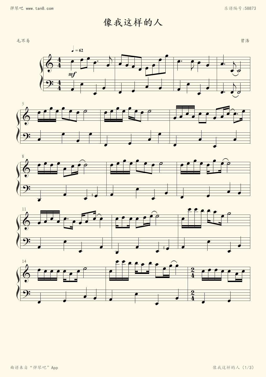 像我这样的人-毛不易钢琴谱-毛不易像我这样的人钢琴谱-环球钢琴网
