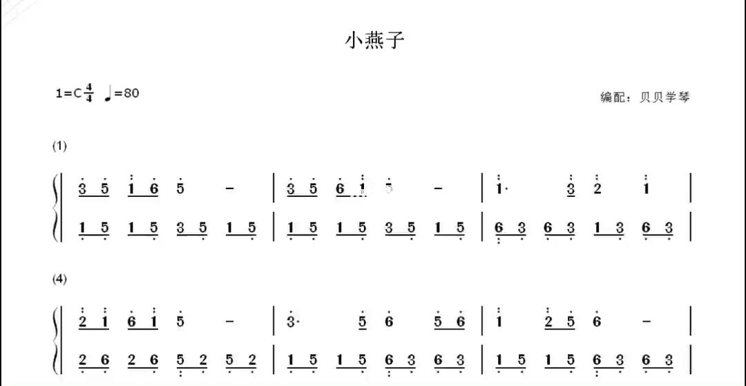 小燕子 钢琴谱 钢琴双手简谱