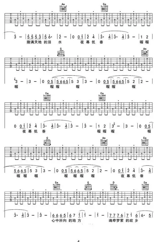 归来吉他谱_满江_g调原版六线谱_《归来》高清图片谱