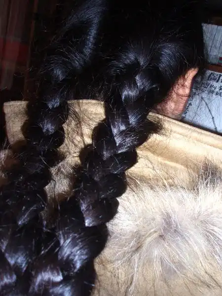 乌黑油亮的大辫子沉甸甸的,发质柔软,顺滑,特别好梳理,不打结,这位