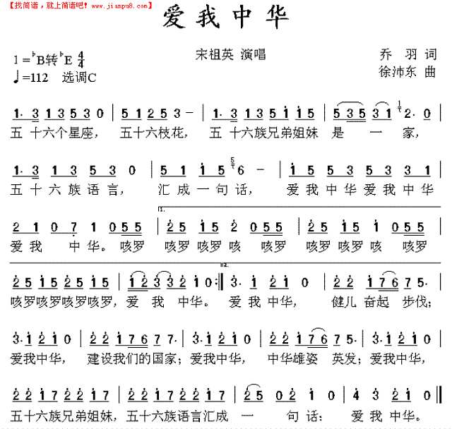 爱我中华原创二胡曲谱乔羽作词徐沛东作曲