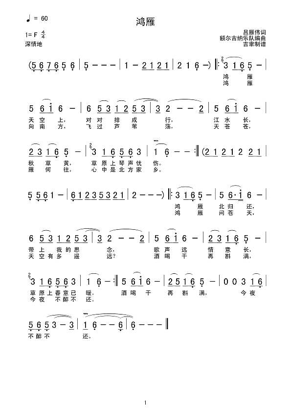 简谱《鸿雁》