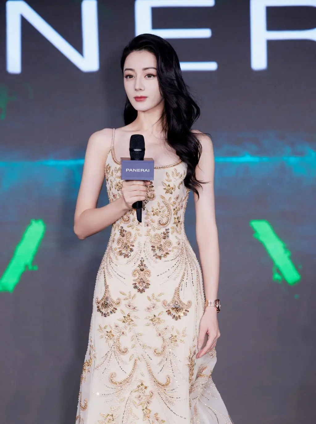 迪丽热巴最新美照,香槟色刺绣礼服裙星眸璀璨优雅至极,热巴好美