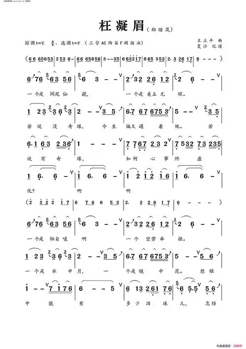 枉凝眉简谱-郑绪岚演唱-曹雪芹/王立平词曲