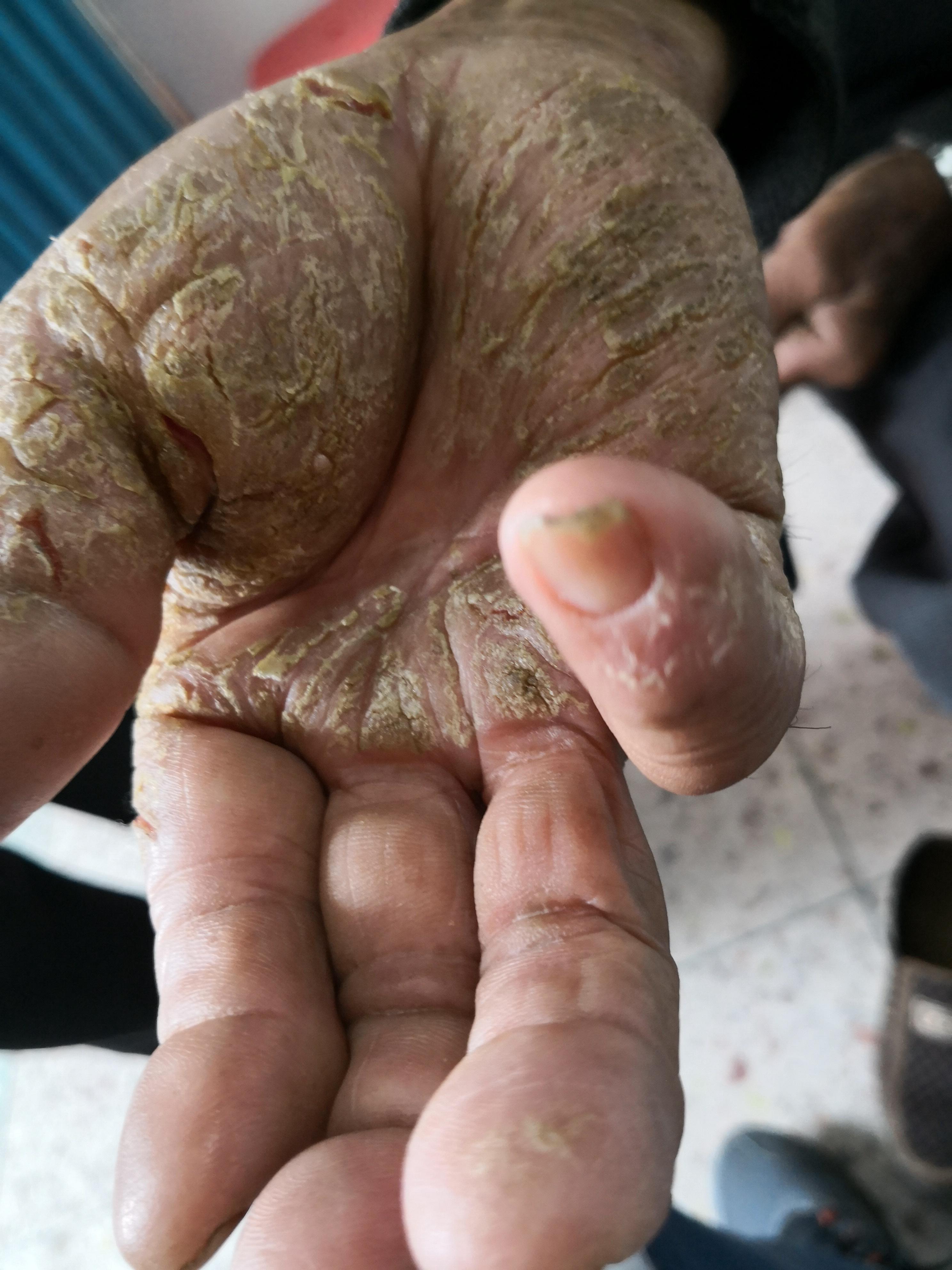 【求助】请求诊断与治疗:手指皮肤反复局部角质,皲裂,脱皮近一年.