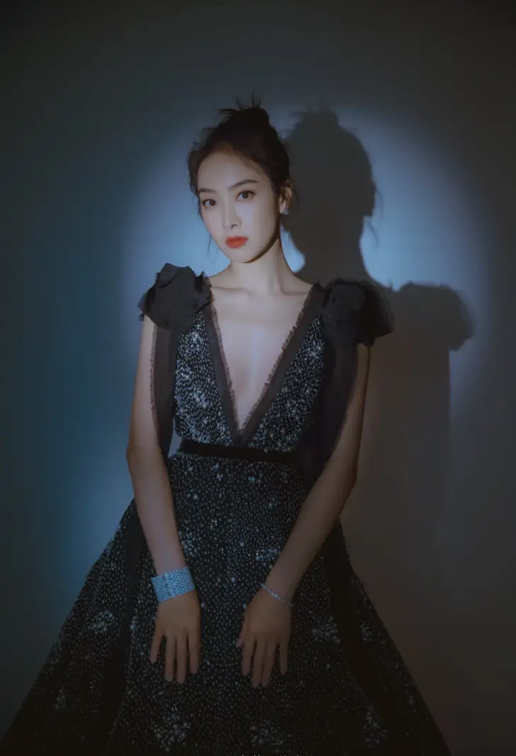 宋茜# 一袭黑色深v抹胸礼裙,肤白貌美的容颜,丰满傲人的事业线,前凸
