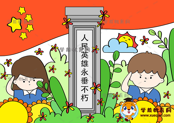 人民英雄纪念碑简笔画卡通简笔画烈士纪念碑画法第二款清明节主题画