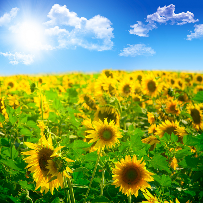 阳光云彩下的向日葵摄影图片