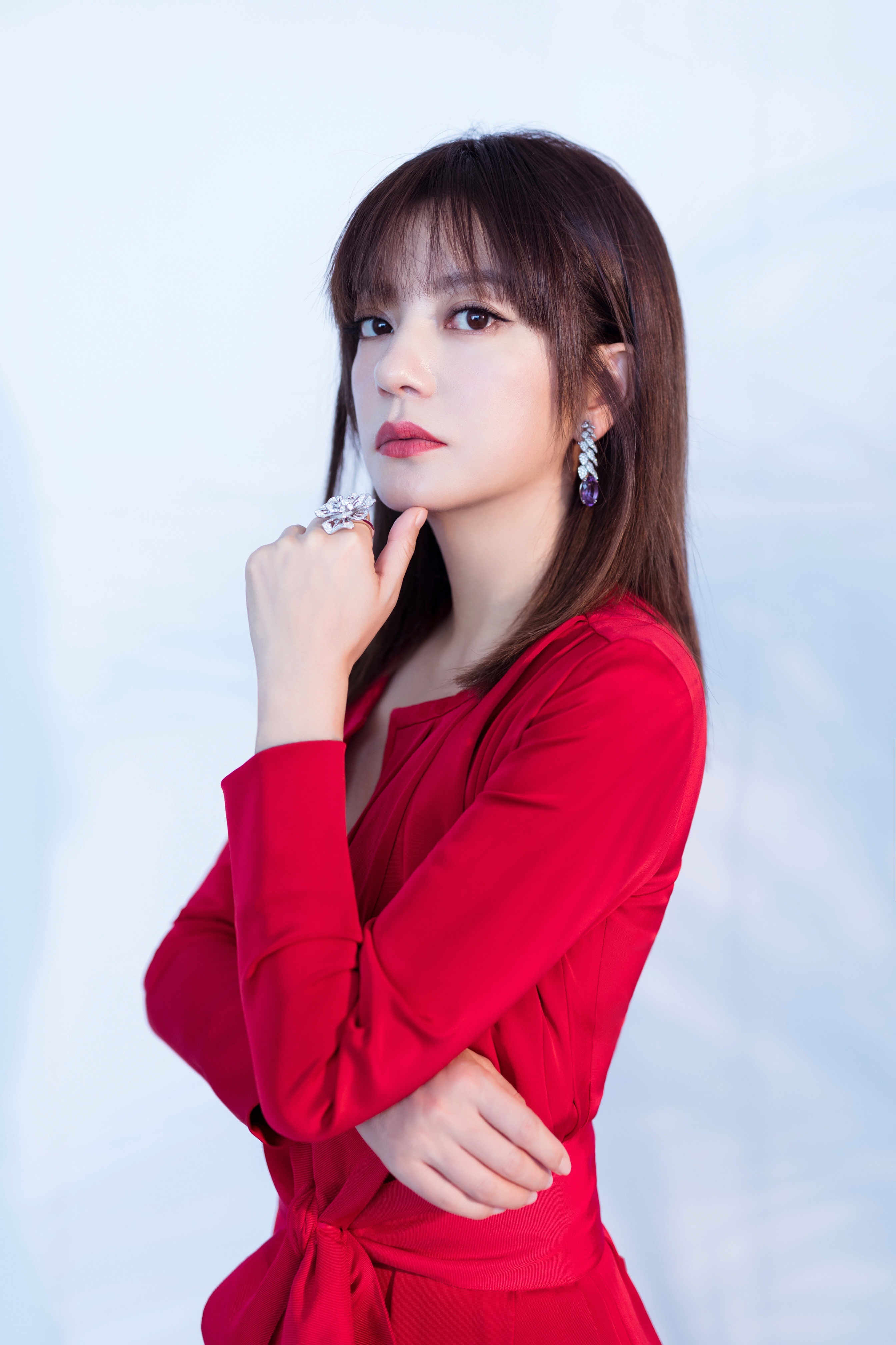 赵薇酒红色格子套装优雅写真图片69