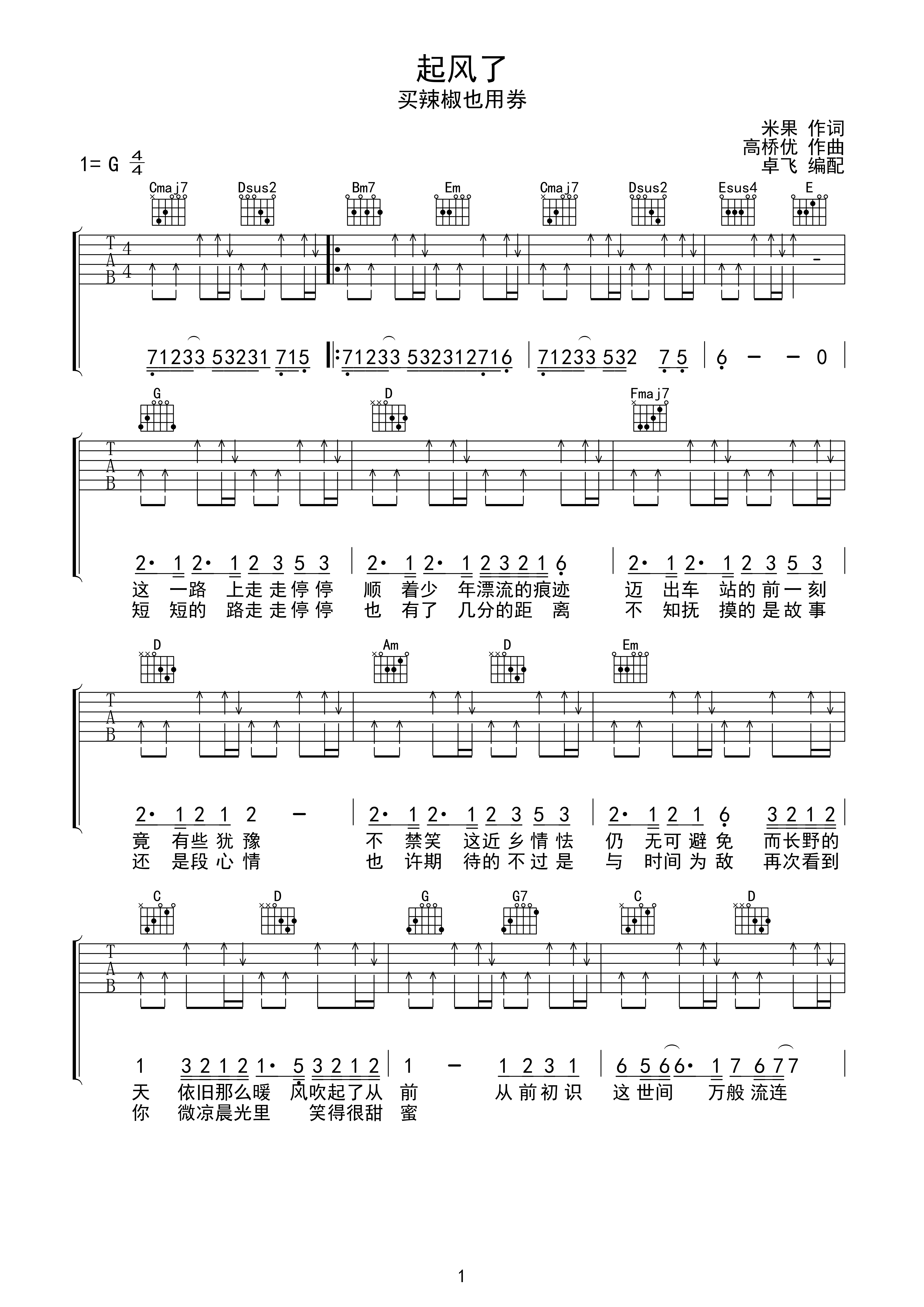 起风了g调六线pdf谱吉他谱-虫虫吉他谱免费下载