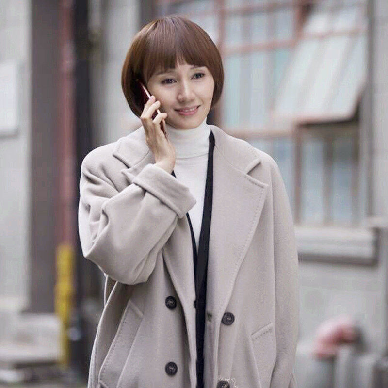 我的前半生唐晶袁泉同款手缝双面呢羊绒大衣女中长款外套2017新款