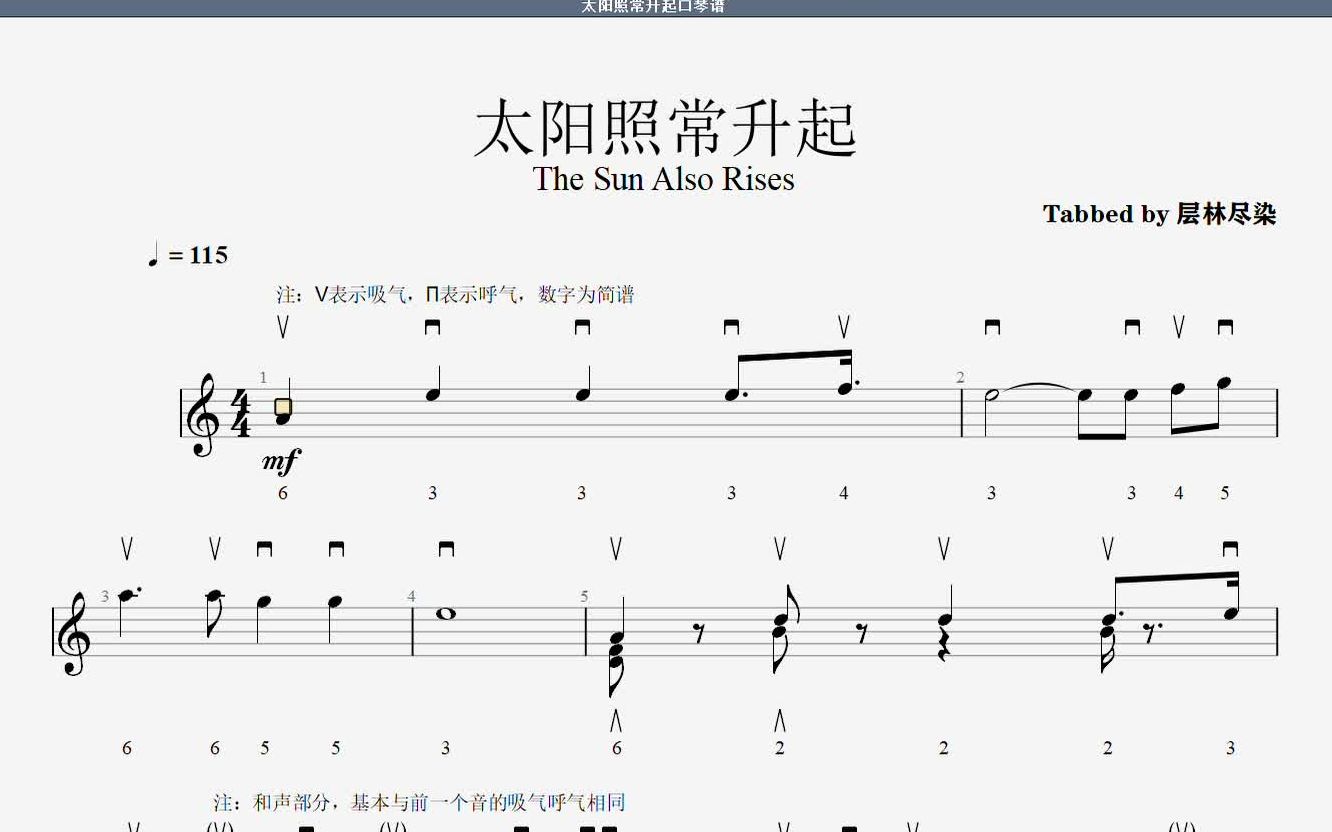 口琴谱c调无伴奏口琴版太阳照常升起独奏谱