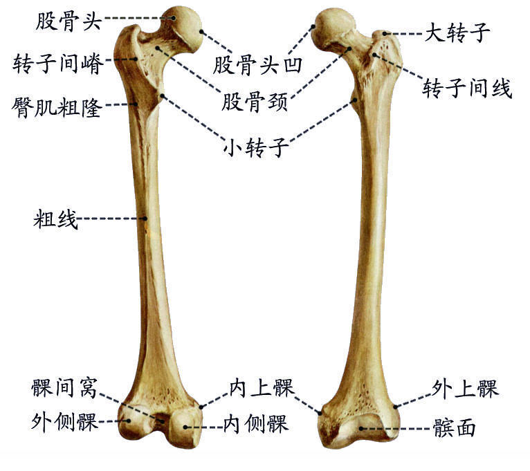 大转子就是你的大腿里面那根"股骨"的最外侧点,它是一根骨头的突出