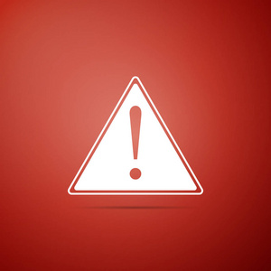 在红色背景上隔离的三角形图标中的感叹号.