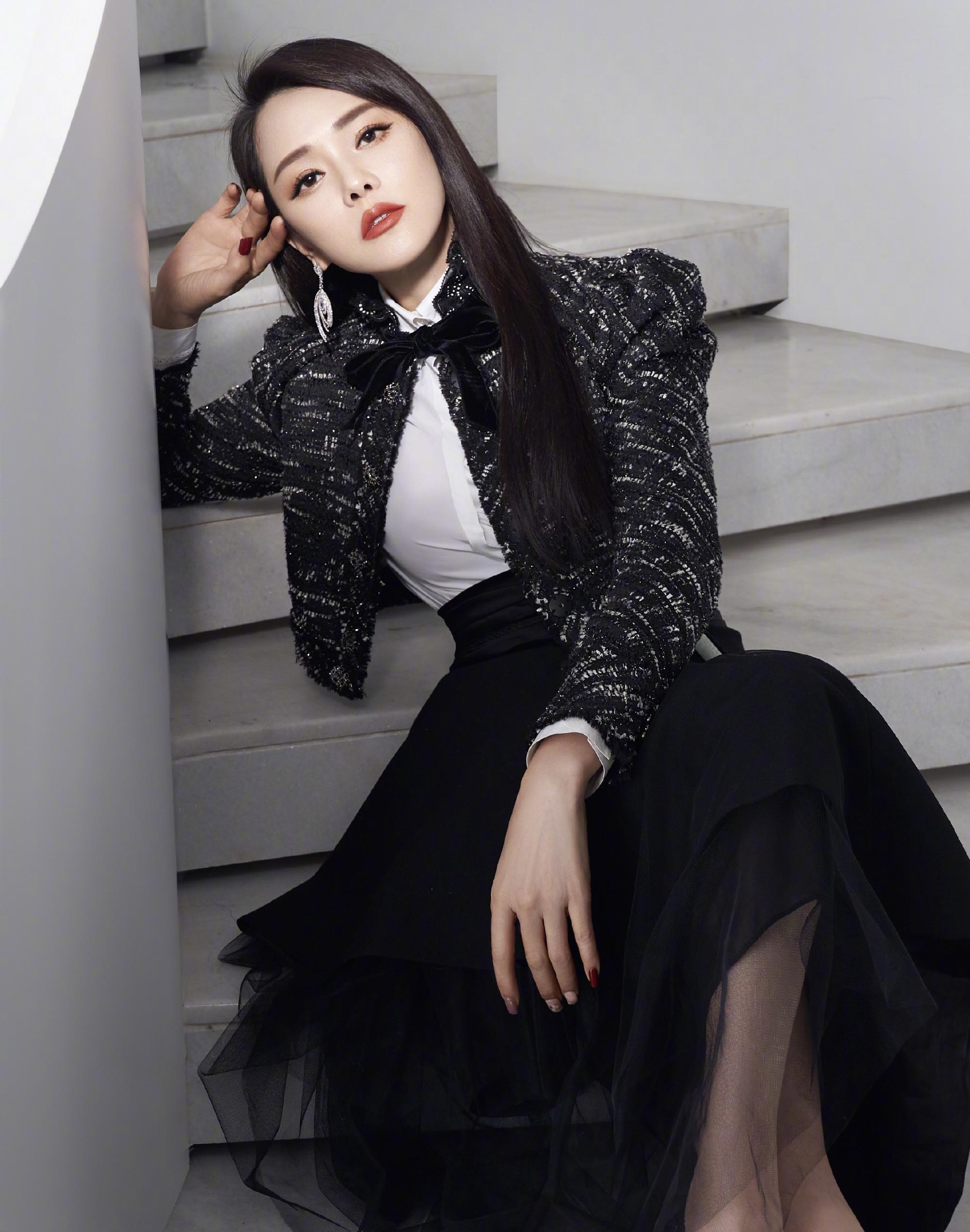伊能静终于不"装嫩",穿黑色连体西装潇洒大气,52岁状态真少见