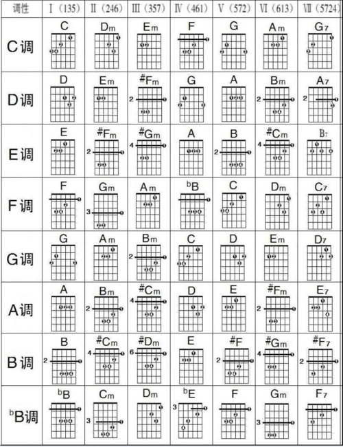 吉他各调常用和弦图
