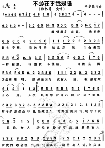 林忆莲不必在乎我是谁简谱_简谱_歌词曲谱