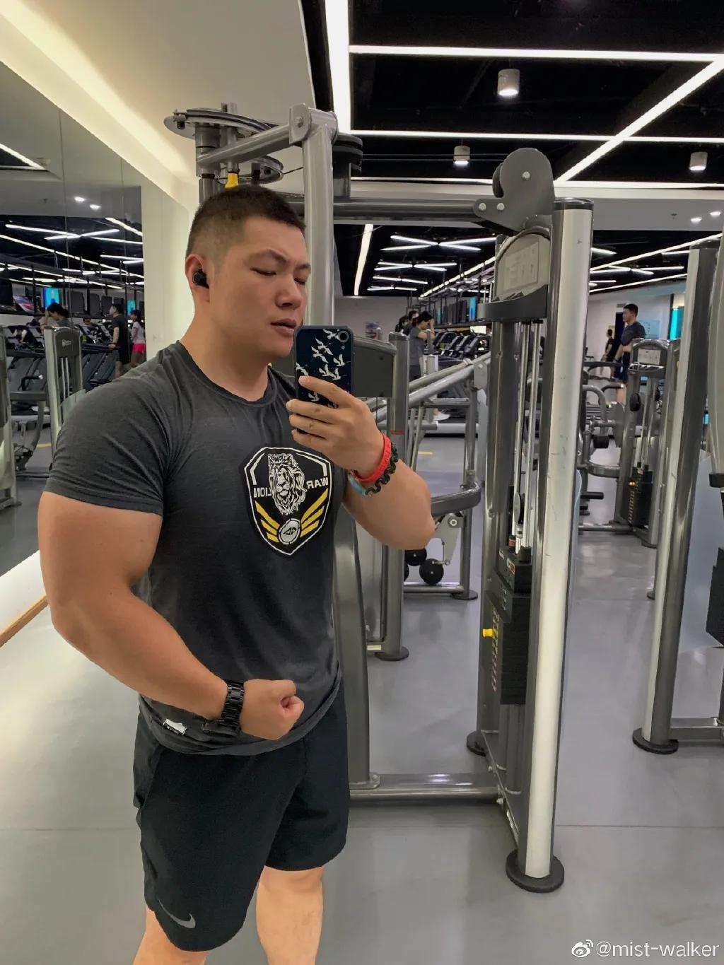 硕大的胸肌一身发达的肌肉,在健身房也算佼佼者只能用虎背熊腰来形容