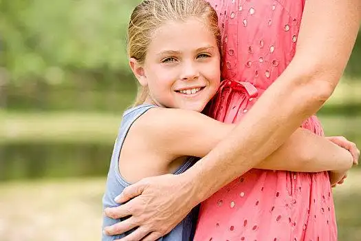 男人拥抱女孩的腰部,女孩低下头哭泣或微笑. 约会或离别. 关系的结束.